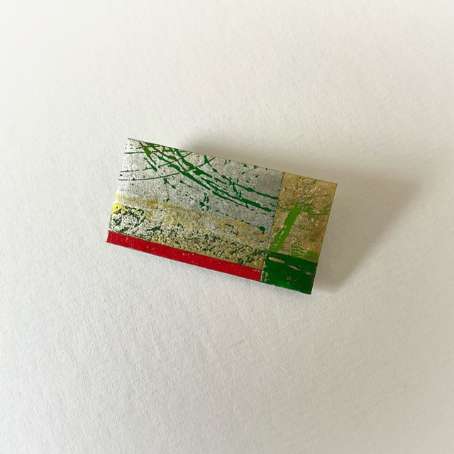 Handmade and unique made from hand painted gilded paper. Very lightweight and easy to wear on any garment and on any colour.