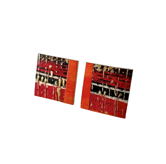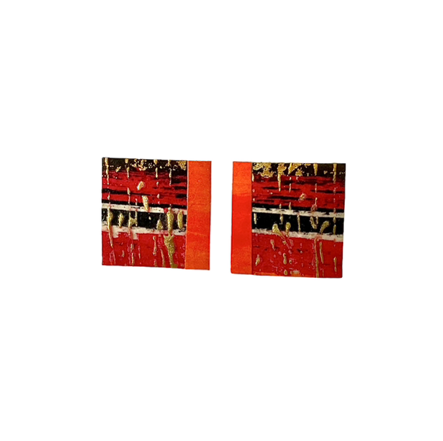 Vermilion red and black stud earrings splashed with golden droplets to appeal to the Jackson Pollock in you.