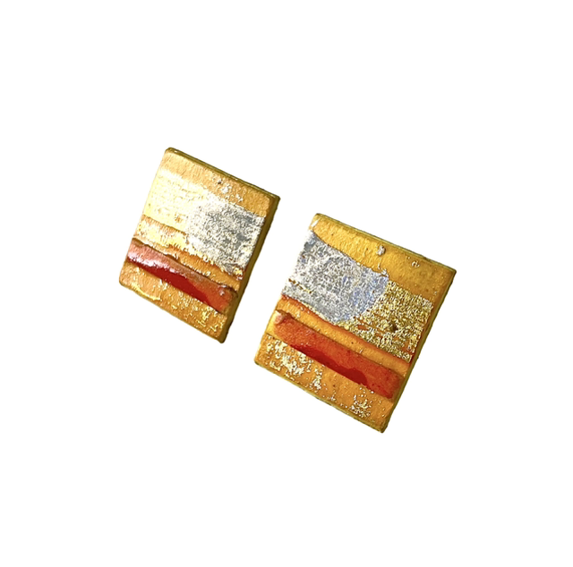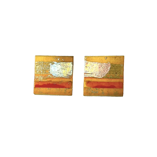 Vibrants glowing stud earrings with a dash of painterly silver,. Beautifully textured individual custom ear studs for those orange lovers.